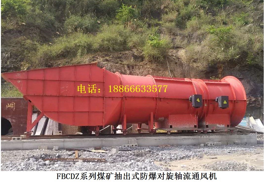 FBCDZ系列礦用防爆型壓入式對(duì)旋軸流局部通風(fēng)機(jī)是一種用途廣泛的新型局部通風(fēng)機(jī)。該型風(fēng)機(jī)具有結(jié)構(gòu)緊湊,噪聲小,效率高等優(yōu)點(diǎn)。該型風(fēng)機(jī)適應(yīng)性能強(qiáng),由于裝有兩臺(tái)電動(dòng)機(jī),各帶動(dòng)一個(gè)葉輪運(yùn)轉(zhuǎn),既可整機(jī)運(yùn)轉(zhuǎn),又可單級(jí)使用,因此,使用該型機(jī)可減少能耗,節(jié)約資金,是礦井局部通風(fēng)的理想設(shè)備。通風(fēng)機(jī)為煤礦用隔爆型,防爆標(biāo)志:Exd1